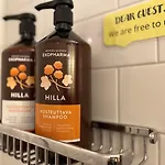 Einige der gemeinschaftlichen Badezimmer sind mit einer Dusche sowie Toilettenartikeln ausgestattet.